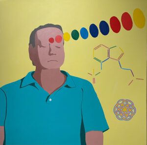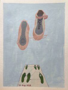 Box Step Jeff, 2023. Acrylic on paper. 18 x 24 inches. Maple frame, UV Plexi.