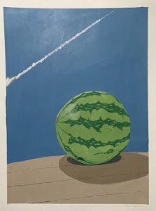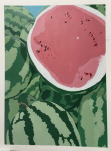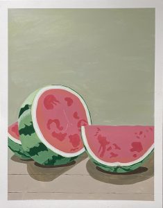 Watermelon/Biṭṭiḵ, 2023. Acrylic on paper. 18 x 24 inches.