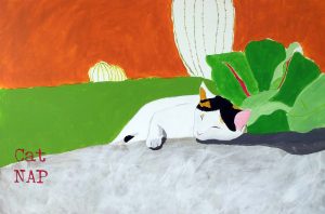 Cat NAP (Non-Aggresion Principle), Acrylic on canvas, 36 x 24 x 2.5 inches